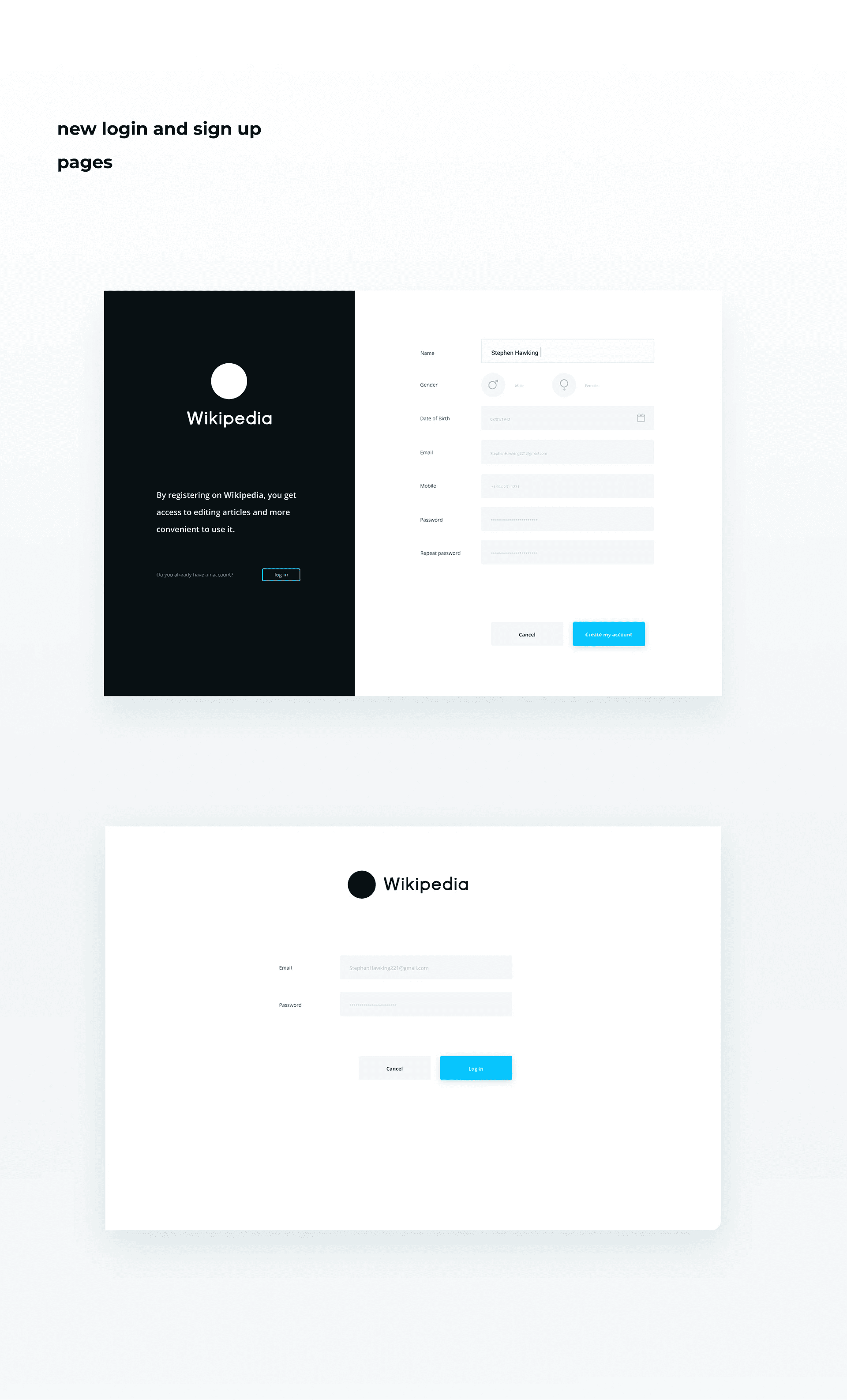 Wikipedia is visited by hundreds of millions of people every month, yet its interface has barely changed in decades. The information is invaluable, but the experience of actually reading it feels like stepping into 2004. The core problem was not the content — it was everything around it: cluttered navigation, no clear visual hierarchy, zero mobile consideration, and an interface that made even simple tasks like finding an article or creating an account feel unnecessarily complex. The challenge was to respect Wikipedia's identity and mission while bringing its UI into a standard that modern users actually expect.
