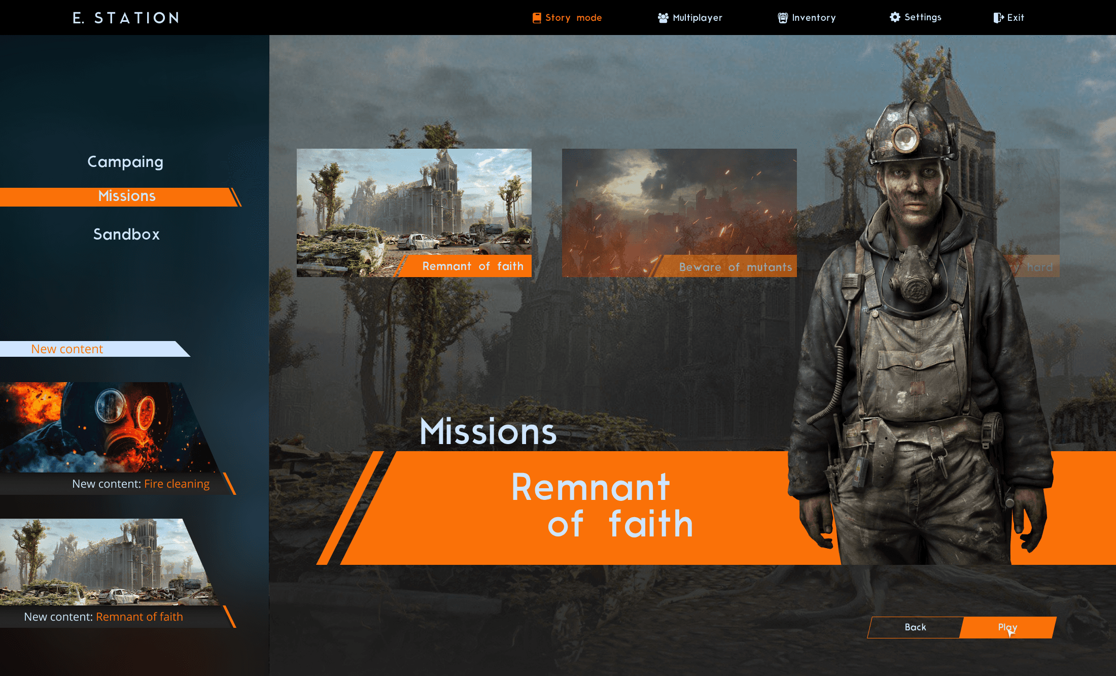 Game jam projects live or die by their atmosphere. E. Station was a post-apocalyptic survival game built for Global Game Jam 2019, and the team had an ambitious scope: story mode, multiplayer, inventory, weapon customization, and settings all needed fully designed screens under extreme time pressure. The bigger problem was tonal consistency. A game about surviving in a world of mutants, collapsed cities, and moral choices needed UI that felt like it belonged in that world rather than bolted on top of it. Generic game UI templates would have killed the immersion completely.
